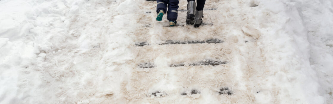 Reducing this risk requires consistent maintenance. Shovel sidewalks and driveways promptly after snowfall. Apply ice melt or sand to slick areas, especially around entrances, steps, and high-traffic walkways. Make sure outdoor lighting works properly so hazards are visible during early morning and evening hours.